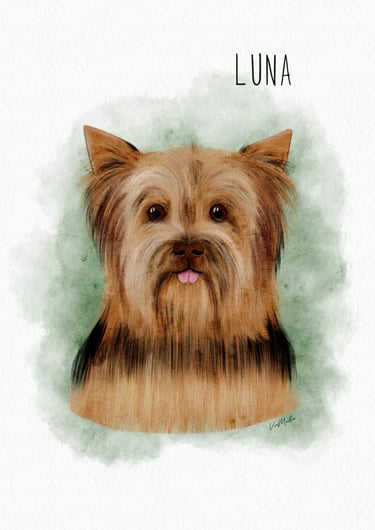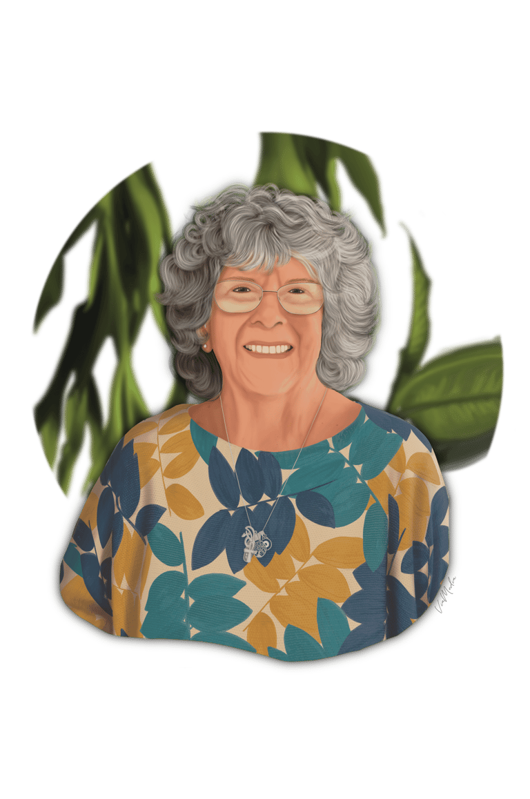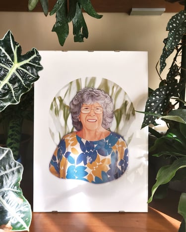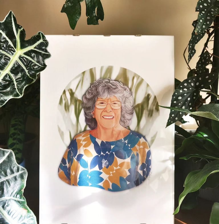 Com linguagem e estilo próprios desenvolvidos pela artista, é uma ilustração digital que capta a essência de cada pessoa. É leve e divertida.
