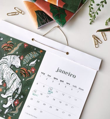 Nossos materiais de papelaria são cuidadosamente desenvolvidos para promover a criatividade e a expressão artística, e ilustrados de forma a refletir a beleza e a harmonia da natureza.