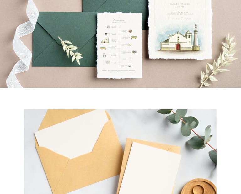 Cada projeto é desenvolvido de forma exclusiva, unindo design, ilustração e papelaria de casamento para criar peças que acompanham os noivos desde o primeiro convite até o grande dia.